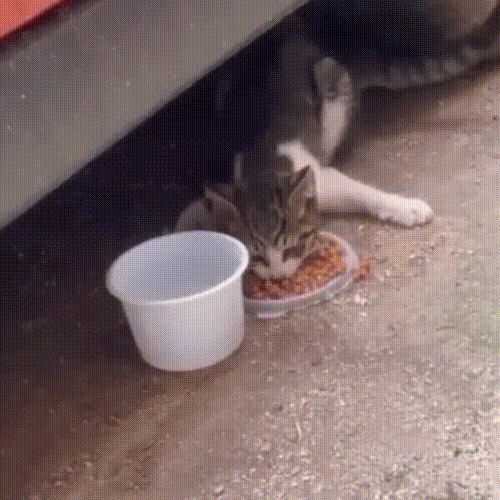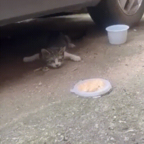 饑餓的小貓咪只能啃食地上的泥土充饑,小姐姐趕緊從超市買來了貓罐頭。