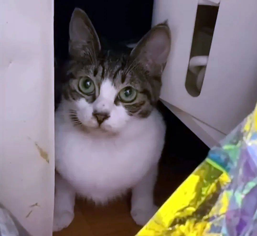 這天,小姐姐發現了這只小貓,擔心小家伙遇到危險,便把它帶回家,怕影響周圍居民,把它放在了公寓頂層的閣樓上,那一層沒有住戶,不會影響到其他人。