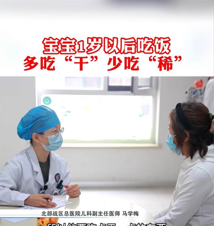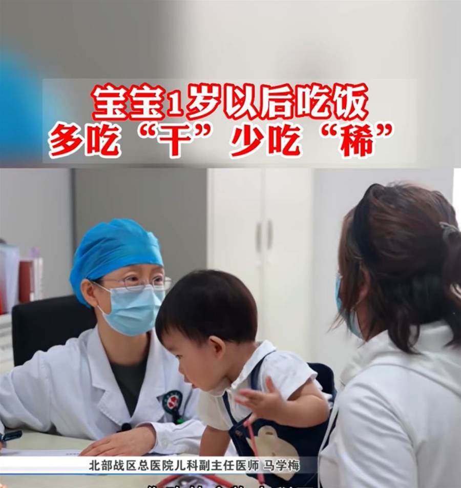 所以馬醫生就提醒媽媽:一歲之后要給孩子多吃干的少吃稀的,多吃干的是因為孩子胃腸的容量有限,孩子每次吃的東西不多,但是孩子需要的營養比較多,所以少吃一些比較稀的粥,給孩子吃飯,這個飯可以煮得稍微軟一點,孩子好消化一些,但這樣的營養價值會更高。