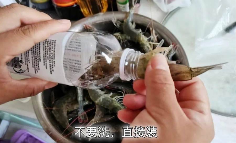 小貼士:為啥保存大蝦的時候不能洗?因為,這個時候把活蝦清洗之后,蝦在清洗的過程中,受不了我們家中自來水的水溫,便會開始變質,蝦頭就會發黑髮紅。所以,在用手往瓶子中塞蝦的時候,切記,手也要用冷水沖洗下降溫,且裝蝦的速度要快。