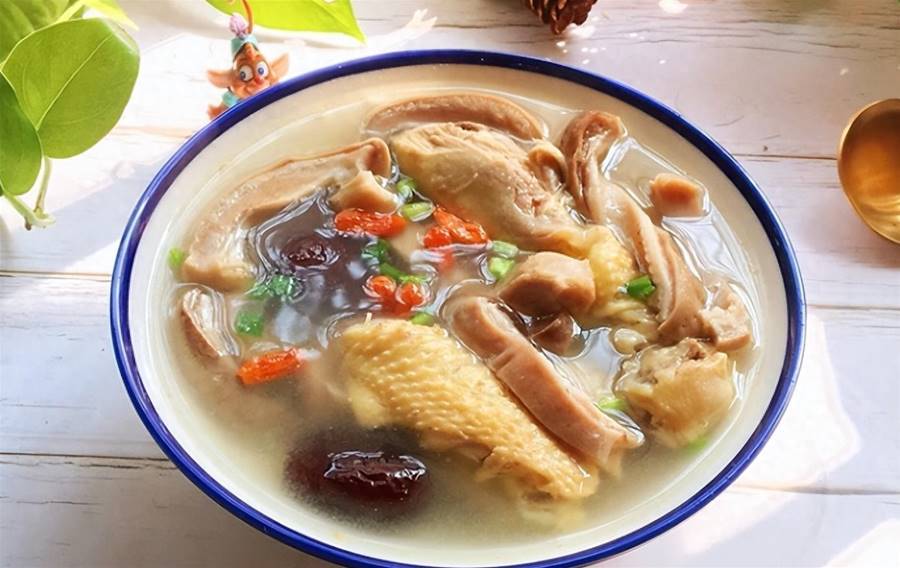 煮到還剩五分鐘的時候,加鹽、枸杞進去。煮好了,就可以盛出食用了。霜降前后喝這道湯,滋補暖身,增強免疫力,遇到寒冷也不怕,記得做呀。