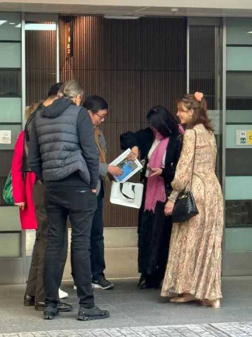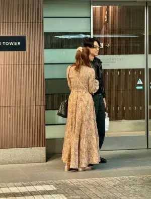 大陸網友在微博表示,到東京赤坂吃飯時遇見林志玲和AKIRA,她用髮圈紮起高馬尾,穿長袖碎花洋裝,AKIRA著皮外套、戴眼鏡,與富邦集團董事長蔡明興、老婆翁美慧看似翻閱刊物,原PO透露,一行人離開時,林志玲像個小女孩一樣跑上前拉著老公的手,看得出來夫妻感情很好。
