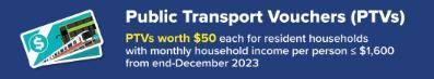 新加坡家庭人均收入低于1600新的家庭可获得价值50新的公共交通补助券。