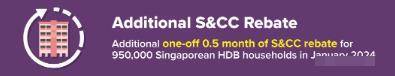 2024年1月,住在政府组屋的95万户新加坡家庭可额外获得一笔0.5个月的杂费回扣。