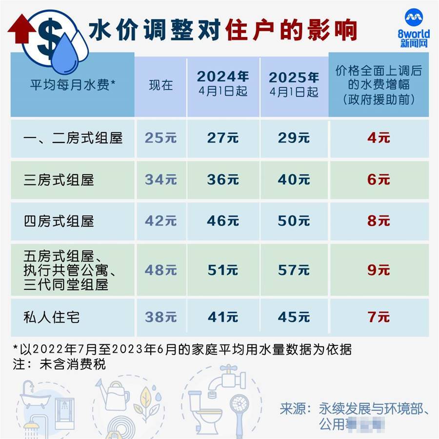 水费上调后,每户家庭每月的水费具体涨幅,在4-9新币不等。