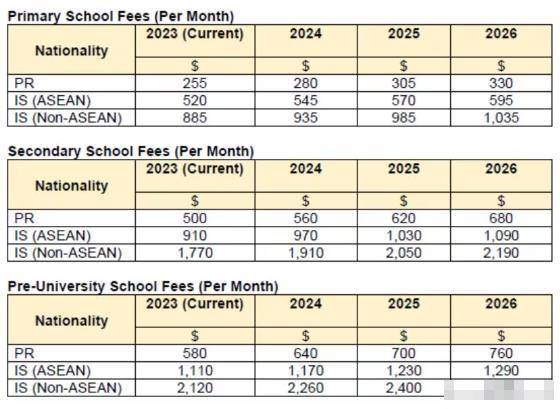 2024年1月开始,直到2026年,新加坡PR学生每月学费将调高25-60新不等,国际学生的学费将每年调整25-140新不等。