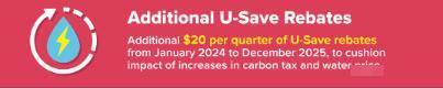 2024年1月-2025年12月,新加坡人每个季度可额外获得20新币的水电费回扣,以缓解碳税和水价上调的影响。