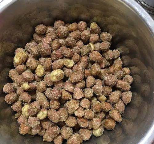 第三:熬糖液時候,里面不要放油,用水熬糖液,再加上調味品攪拌一下,把花生放進去翻炒均勻,然后關火,再把調味粉放進去翻炒一下,炒到糖液變干,這樣花生就都分開了,把花生晾涼,吃起來嘎嘣脆。