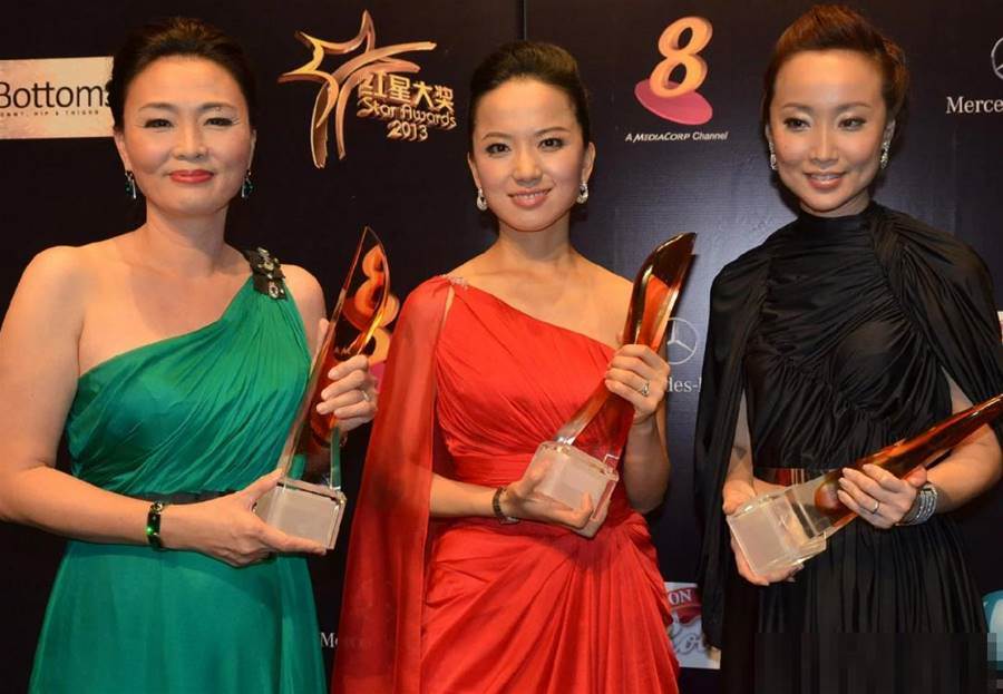 2013年“红星大奖”,曾月丽(左)与董素华(右)夺得佳时事主持人奖,赵文蓓(中)则摘下最佳新闻主播奖。(档案照)