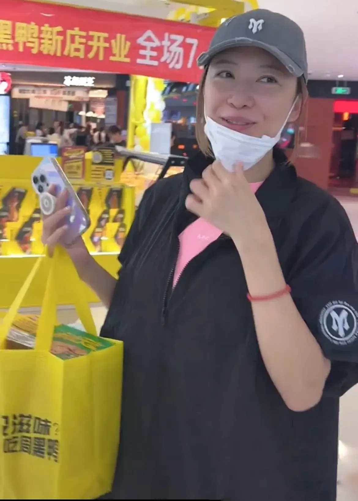 照片中,應采兒身穿黑色羽絨搭配灰色運動褲,一身休閑裝看起來隨性自然。童心未泯的應采兒戴著兒子的卡通棒球帽,單手托臉,面帶燦爛笑容,看起來好美,素顏出鏡狀態超好,完全看不出來是倆孩媽媽。hoho穿著黃色風衣和黑色長褲,一身亮麗打扮軟萌可愛。