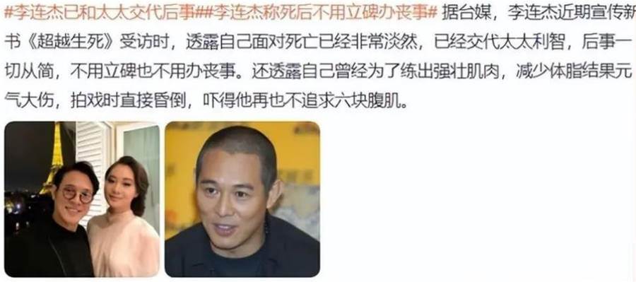 实际上,年逾花甲的李连杰,早已看透生死,甚至向妻子交代好后事.....
