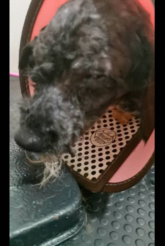不過寵物店工作人員還是挺友善的,并沒有急著去給它剃毛,而是先是喂食陪伴了一會,取得了它的信任之后,再小心翼翼的用剃子去剃毛發。就這樣花費了幾個小時后,終于是看清了狗狗原本的樣子!其實它還是挺小巧可愛的,并沒有流浪模樣時那麼可怕!不過大家也發現了狗狗身上的傷情,比想象中要嚴重許多。