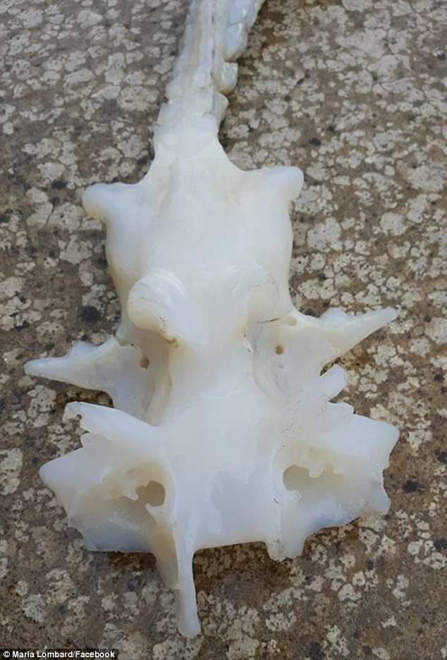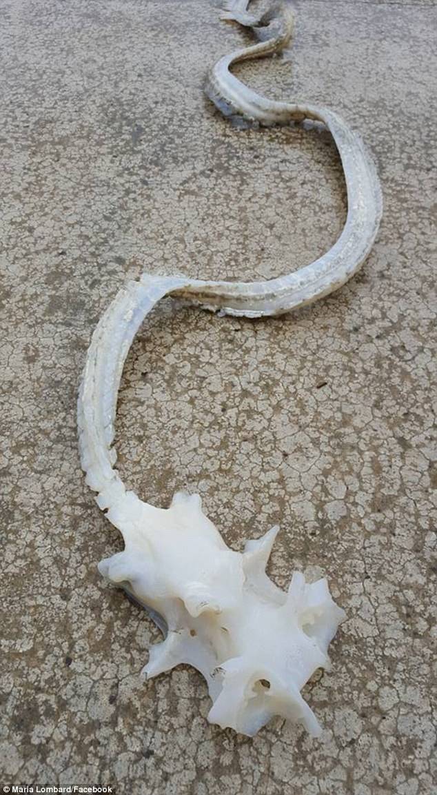 瑪莉亞把這串骨頭帶回家,結果沒有鄰居知道這到底是什麼動物的骨骸,她還以為自己真的撿到龍的遺骸!最後瑪莉亞決定把這張照片發給蒂帕帕博物館,希望專業人士可以幫他解答。