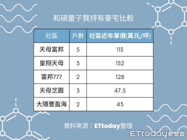 ▼和碩童子賢持有豪宅比較。(表/ETtoday彙整)