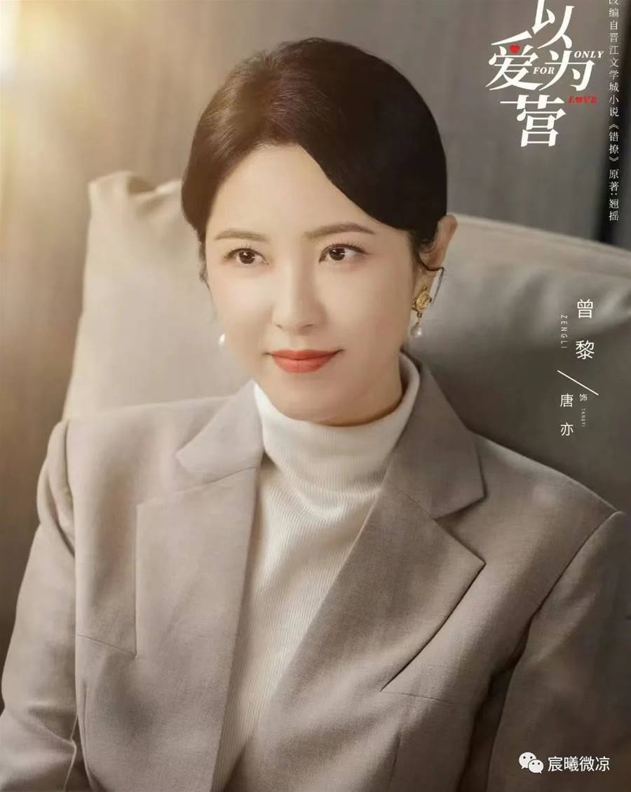 《以愛為營》中,鄭書意是一個很有能力的記者,她是在一家老牌財經雜志社上班,領導對她非常的器重,鄭書意在工作上,也獲得了滿足感。在《以愛為營》中,唐亦是鄭書意的直屬領導,她是一個很有眼光、也很有大局觀的職場女強人。