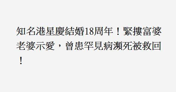 前日(2日)他在社交網貼出一家人合照,慶祝結婚18周年,更放出當年的結婚照,與太太Kaka隔空秀恩愛。