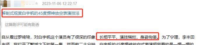 沒開播之前,不少網友看著電視劇的海報上的白宇帆和于和偉平齊,就開始質疑其演技,稱其是「敗筆」。