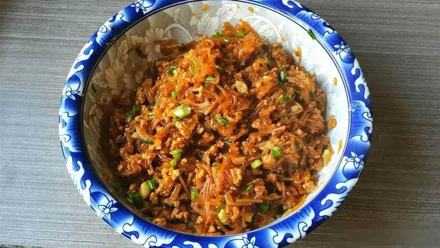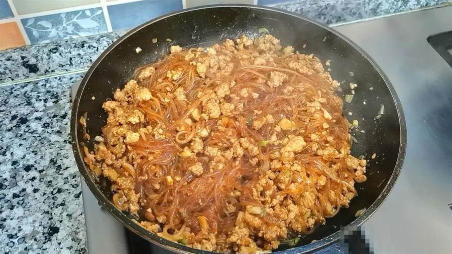 8,粉條熟了,水分收干,翻炒均勻。