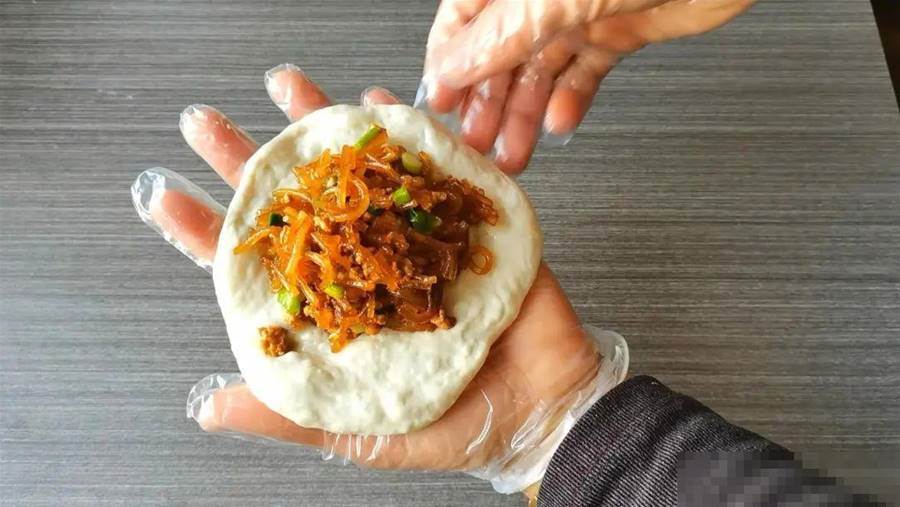 12,放入餡料,包裹起來。