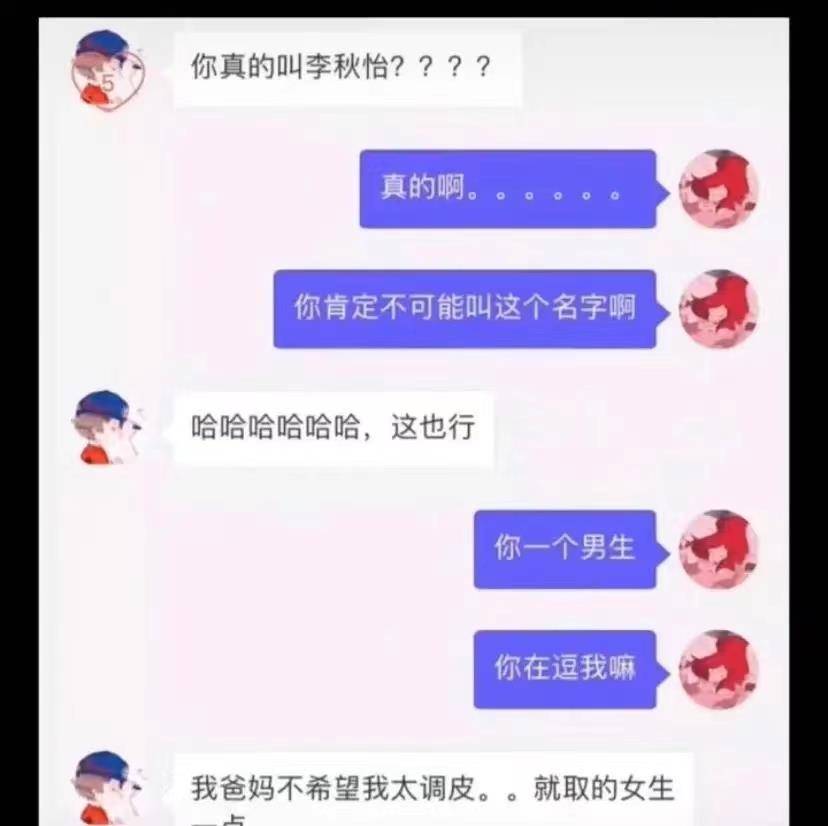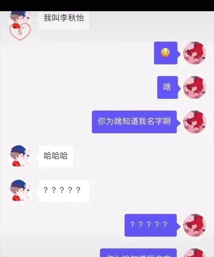 兩個人在網絡相識,一個說自己叫李秋怡,另一個瞬間警惕了,「你怎麼知道我的名字?」問了對方才知道「他確實也叫李秋怡」。