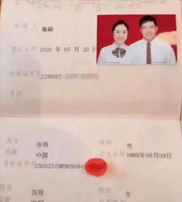 有一對夫妻都叫「張萌」,他們的結婚證也在網上火了,更有緣分的是兩人竟然還是國中同班同學,年紀也一樣大。就連她們自己也覺得緣分妙不可言。