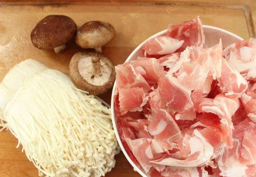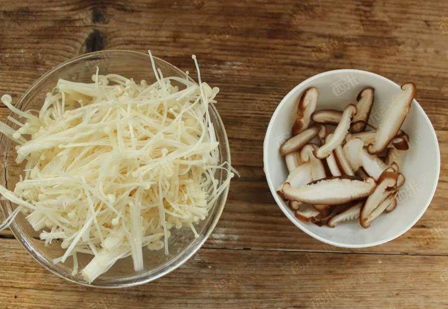 金針菇去掉根部洗凈,香菇去蒂洗凈切片