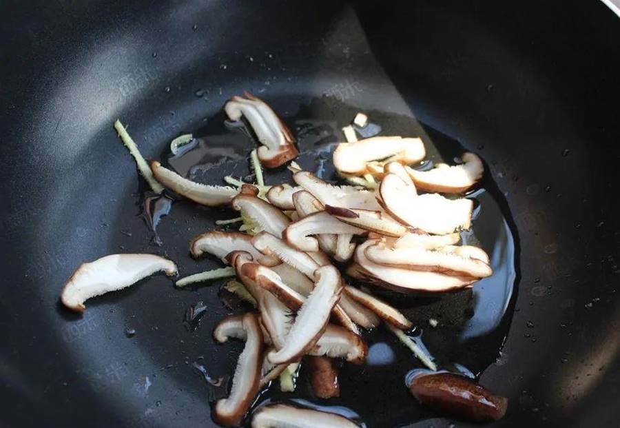 炒鍋,適量油,爆香蔥姜下入香菇。