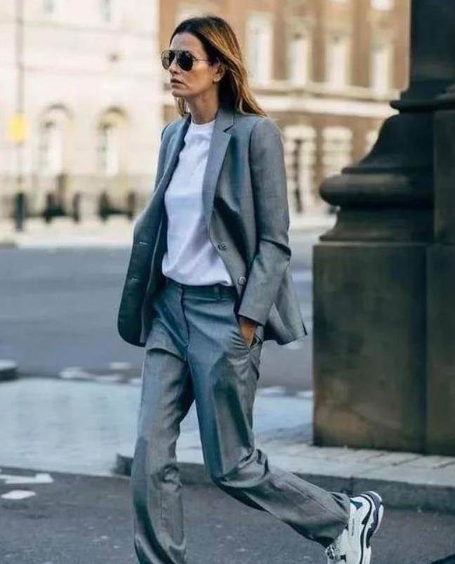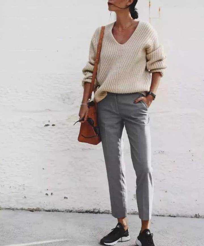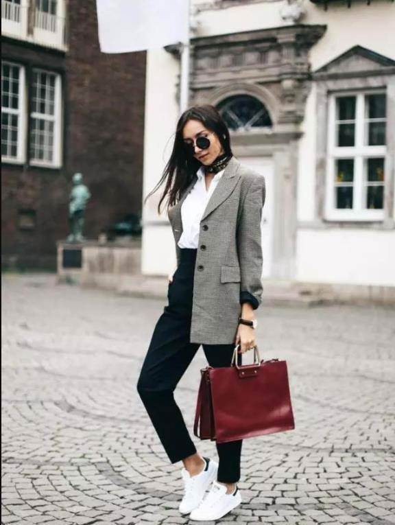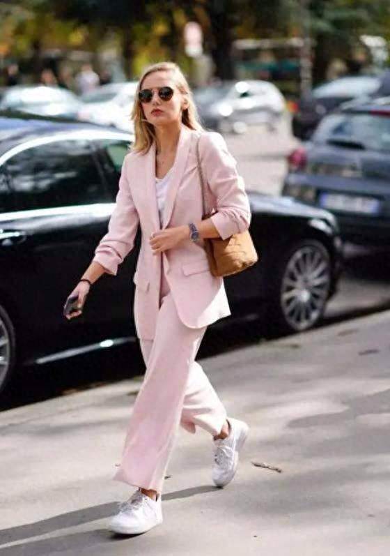 西裝九分褲是很顯干練利落的,也能打造出率性感,這種款式的褲子最適合在通勤上班的時候穿。與運動鞋混搭,則減弱了幾分西裝九分褲帶來的嚴肅感。