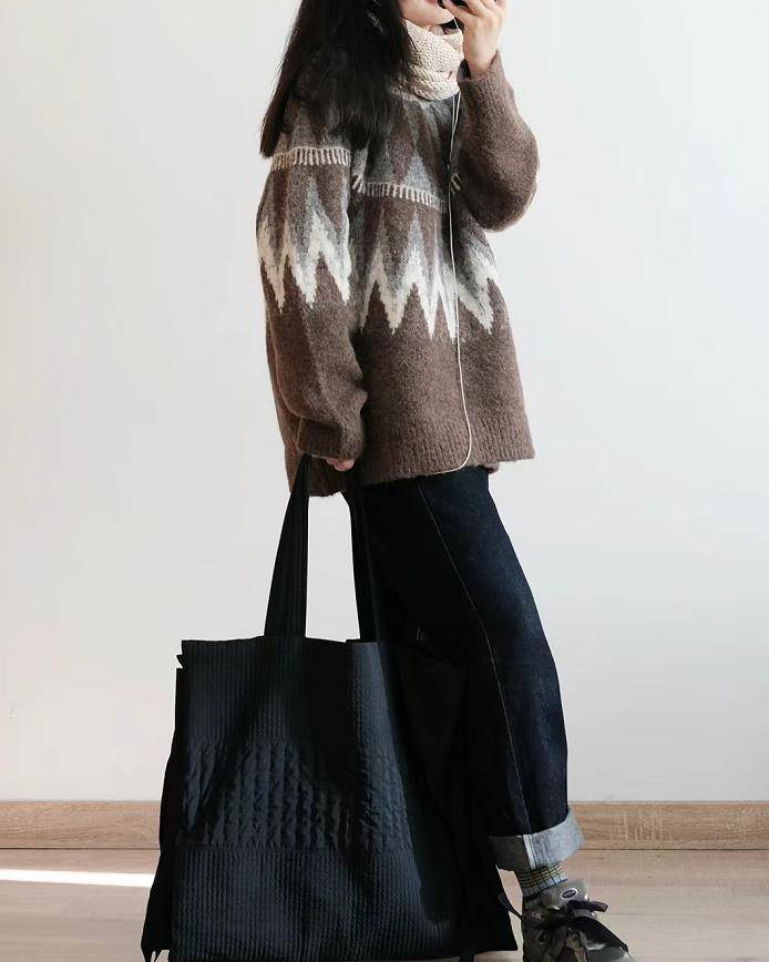 大毛衣與牛仔闊腿褲,那種松弛看著就很舒適,寬松的毛衣,這個版型進行疊穿也合適。早春溫度不穩定,建議外出可以在里面加上一件打底,增加層次又保暖。