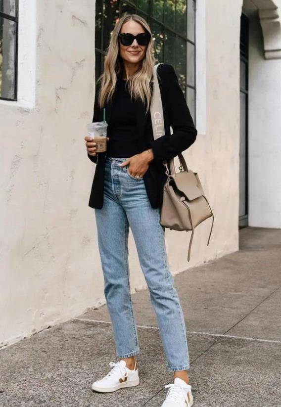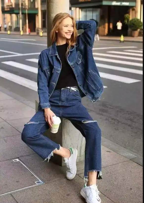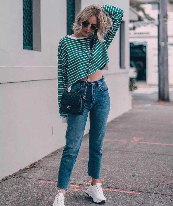 九分牛仔褲與運動鞋的搭配那可是最具代表性的穿搭了,在日常的出鏡率也很高。可通勤,也可日常逛街,輕松玩轉當下運動風,又美又酷。