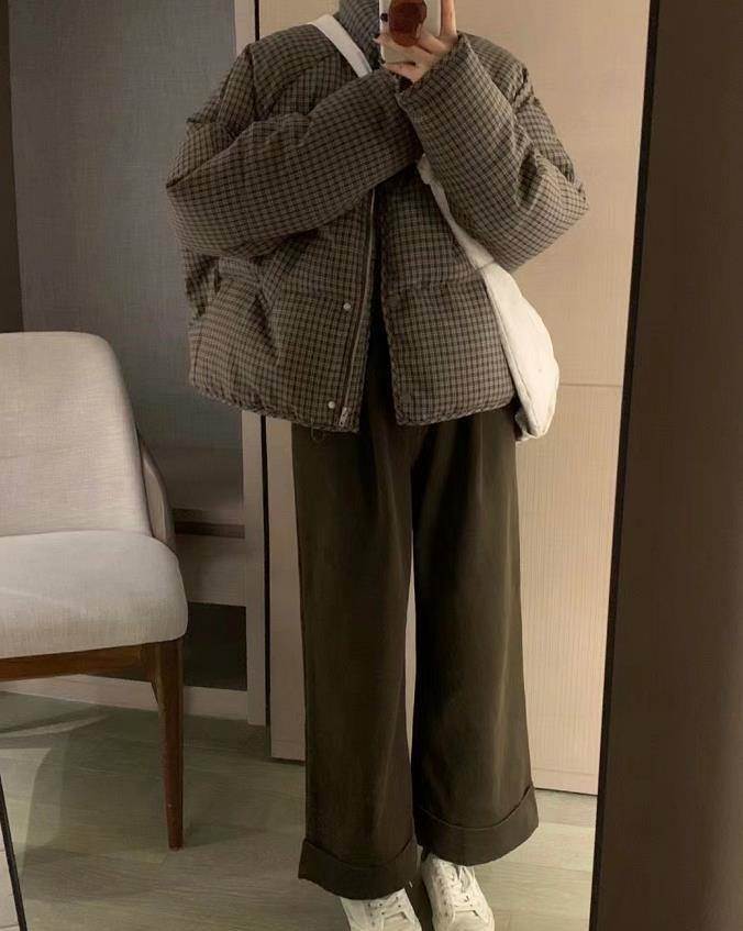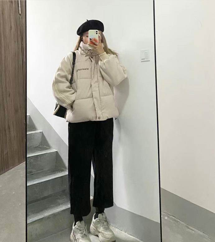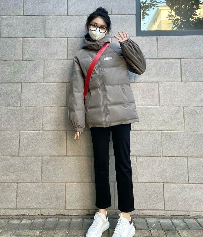 很適合150小個子女生的穿搭,奶白色羽絨服,這個顏色實在是太溫柔了,很百搭又襯膚色。與黑色九分闊腿褲、運動鞋的搭配,就更休閑好看了。
