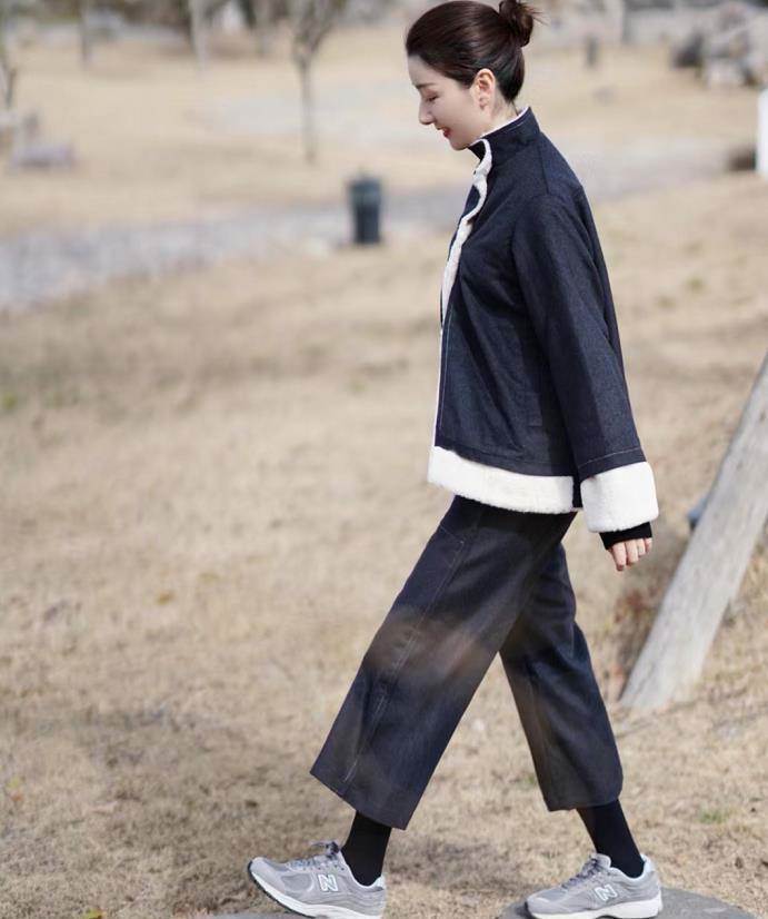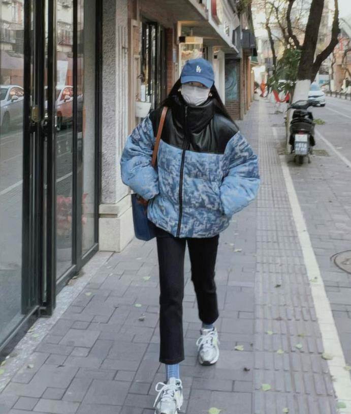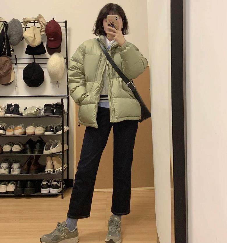 北方的姐妹過冬,沒有羽絨服是不行的,灰綠色羽絨服,這件的顏色很特別,搭配九分牛仔直筒褲和運動鞋,輕松打造出利落感,也減少了羽絨服帶來的臃腫。