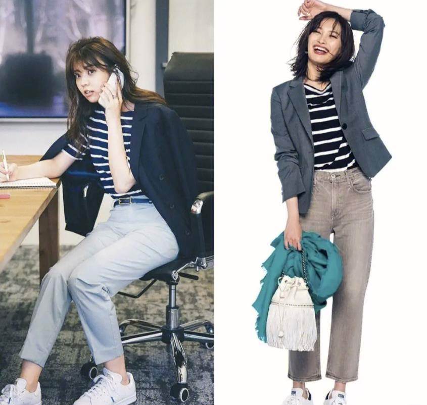 九分褲+運動鞋,真的是很顯高挑又休閑舒適的一套啊,小個子女生這麼穿絕了。