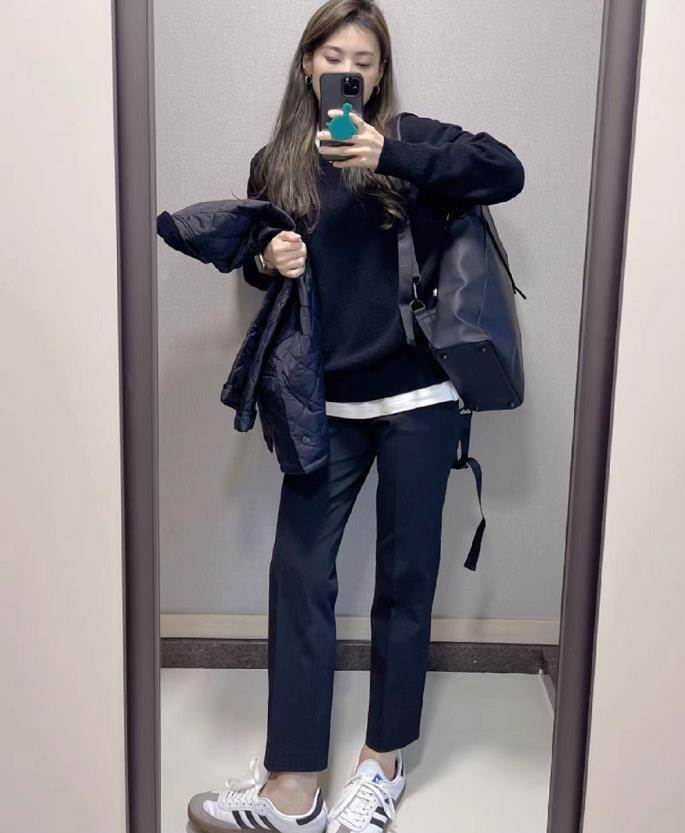 黑色九分褲,最大的特點就是可以讓你的雙腿變得更修長纖細,在視覺上呈現出瘦長的效果。搭配運動鞋,真的時髦好看又舒適。