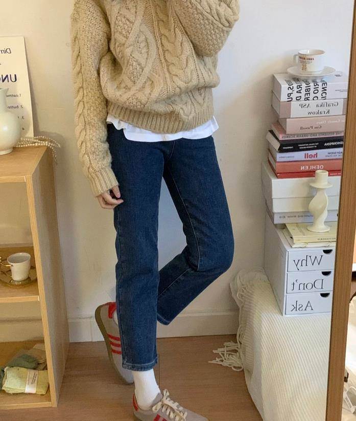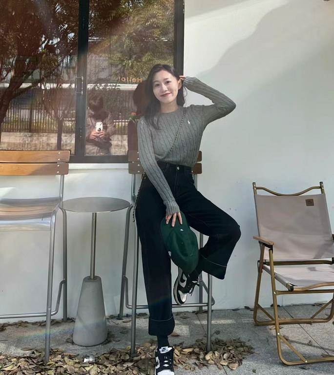 現在的溫度回升了不少,出門單穿一件毛衣,或套件薄外套就行,下身搭配九分牛仔褲與運動鞋,舒適又好看。