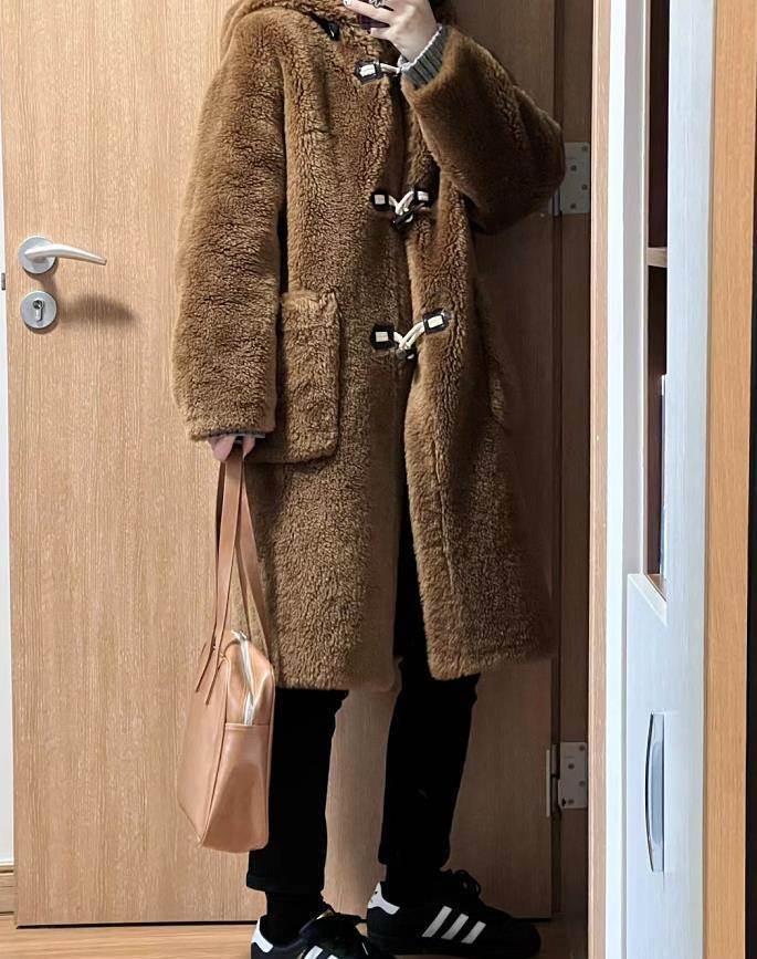 對于毛絨絨的外套是真的沒有抵抗力啊,特別是在寒冷的季節,能穿上這麼一件外套出門,感覺什麼寒意都被驅趕了。搭配黑色九分褲和運動鞋,視覺上也顯瘦了很多,還休閑。