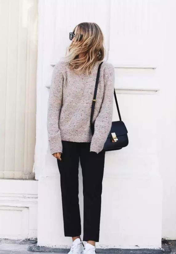 對于九分褲這種褲子,選什麼鞋子來配呢?在這個季節,除了配短靴之外,運動鞋可是很不錯的選擇,時髦休閑又好看。