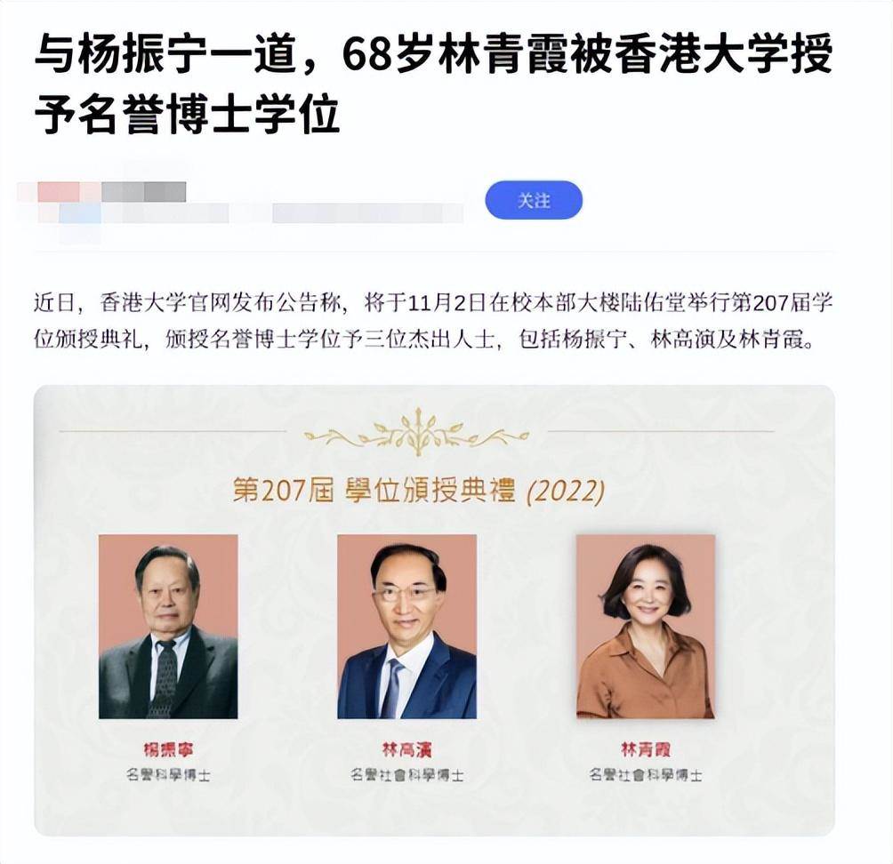 2022年10月20日,林青霞還被香港大學授予名譽博士學位。
