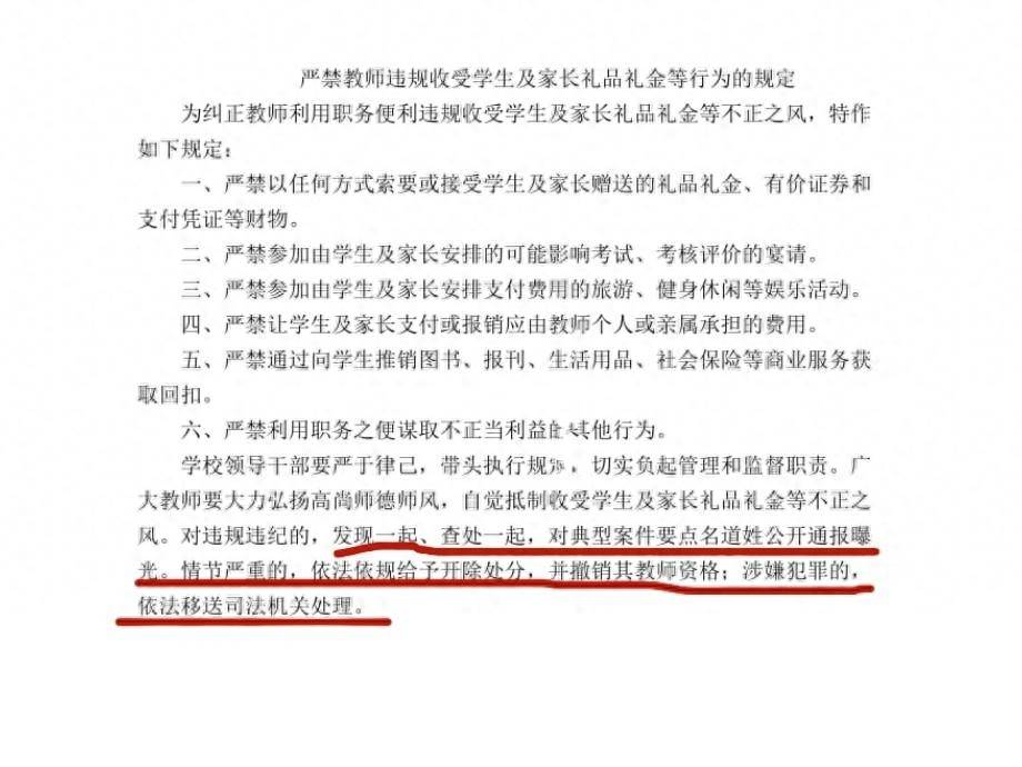 拋開老師的師德不說,早在幾年前,教育部就頒布了《嚴禁教師違規收學生及家長禮品禮金等行為的規定》。