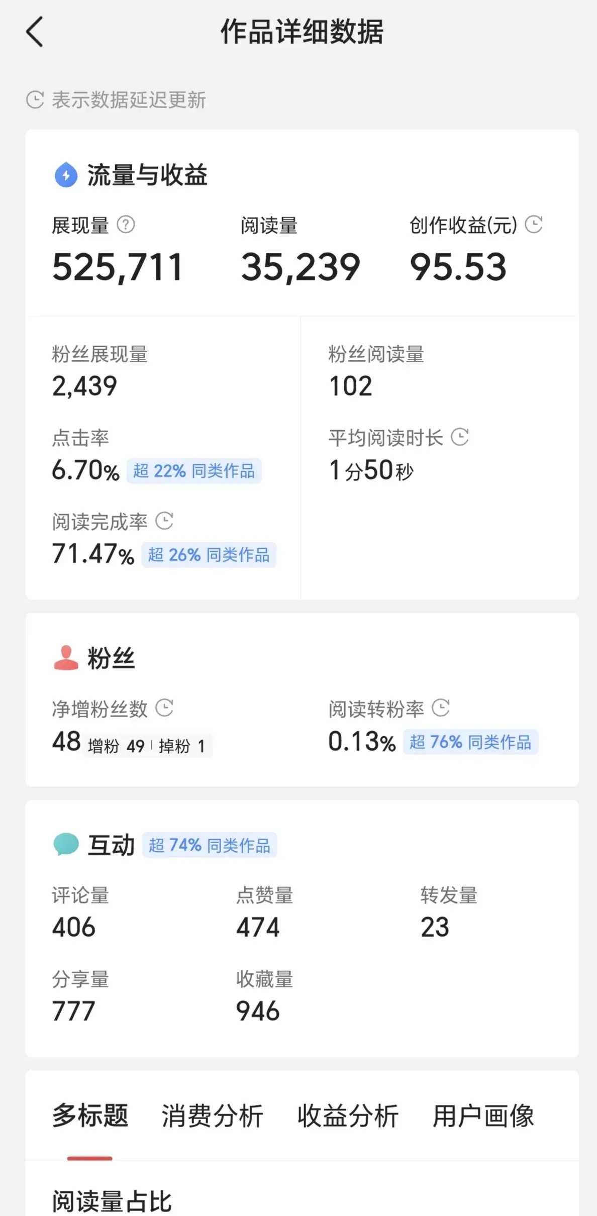 粉絲與文章收益也是有關的,可以多與自己的粉絲進行互動,到互助群里互相幫忙,提升號的權重,值得注意的是只有閱讀時間長了,單價才會提高。那麼閱讀時長的提高辦法就是文章字數要多一些,圖片也是如此,盡量選擇大家愛看的。