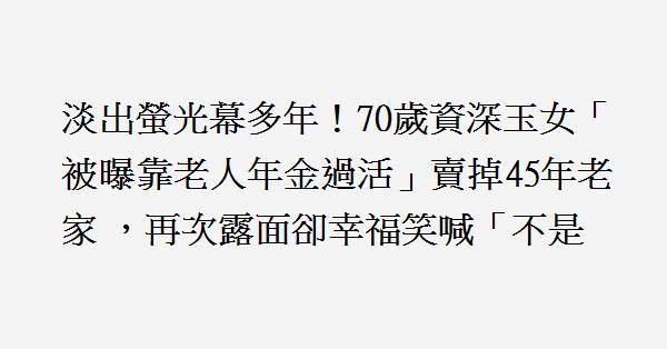 淡出螢光幕多年!70歲資深玉女「被曝靠老人年金過活」賣掉45年老家 ,再次露面卻幸福笑喊「不是你們想的那樣」