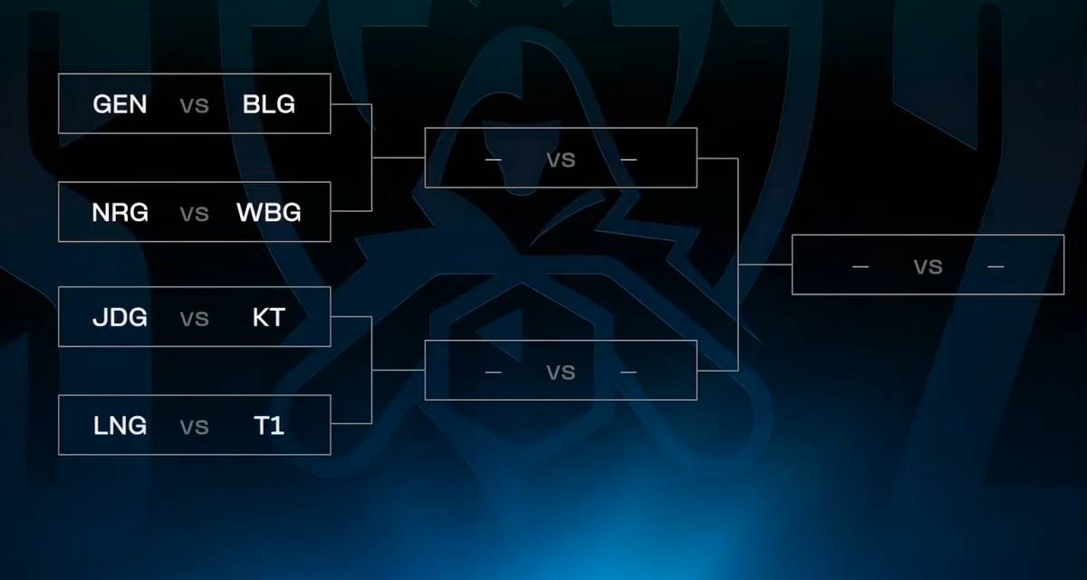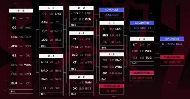 至此瑞士輪最后一天已經全部打完,晉級八強的八支隊伍分別是:JDG,GEN,LNG,T1,BLG,WBG,KT和NRG。三支LCK戰隊,一支LCS戰隊,和四支LPL戰隊。一支LEC賽區的隊伍都沒有,兩支隊伍都倒在了瑞士輪的最后一局中。