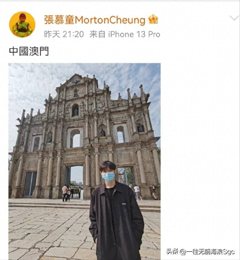 2022年,張慕童曬出去澳門旅游的照片,特意配文:中國澳門,表明立場。