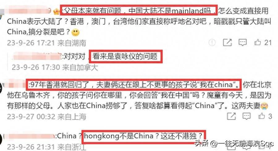 雖然字幕組將「china」翻譯成大陸,但袁詠儀和張智霖的言行還是掀起不小的爭議。