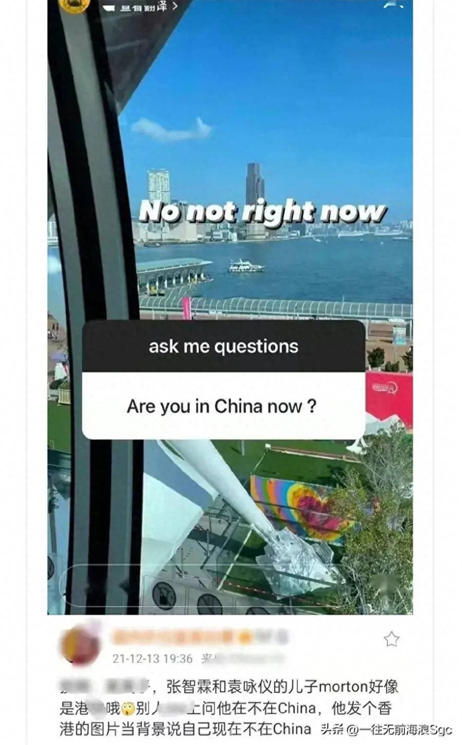 的確,魔童在2021年的時候曾曬出一張照片,別人問他在不在china,他發了個香港的圖片當背景,說自己不在。