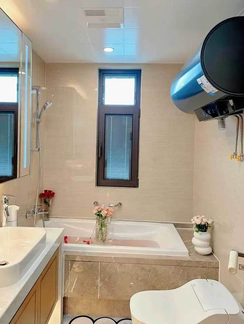 兩個衛生間的好處在于,可以做不一樣的布局,公共衛生間做淋浴房,主臥的衛生間做浴缸,冬日的時候,泡泡澡還是很舒適的。