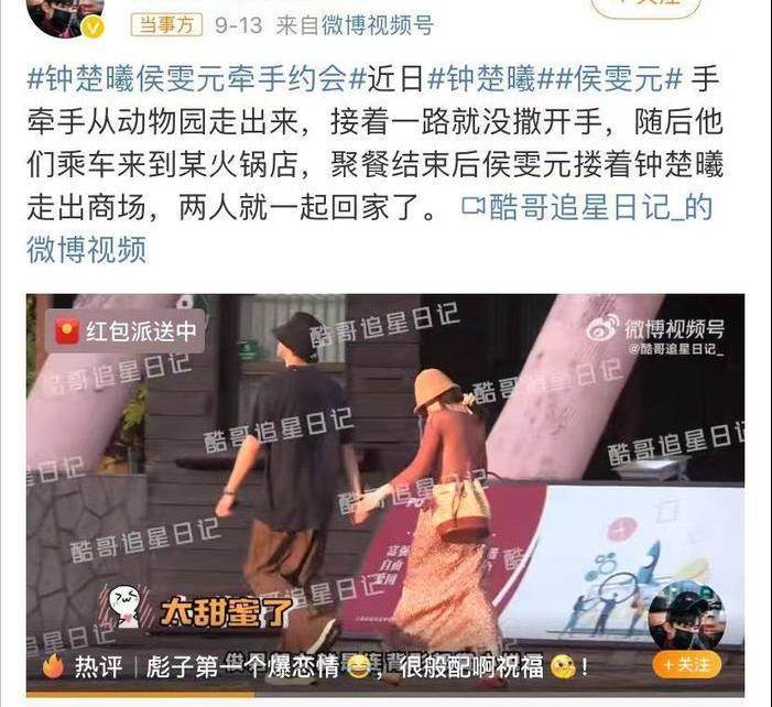 但誰也沒有想到,幾個月后,鐘楚曦忽然被拍到與男演員侯雯元牽手逛街——兩人同樣是因為拍戲而相識,簡直是閃電般的「無縫連接」。
