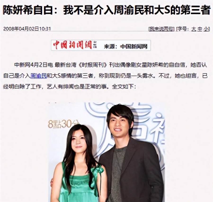 此舉也似乎直接導致的男方與女友大S的分手,陳妍希背負「小三」罪名。
