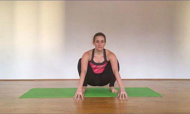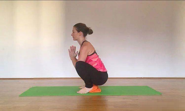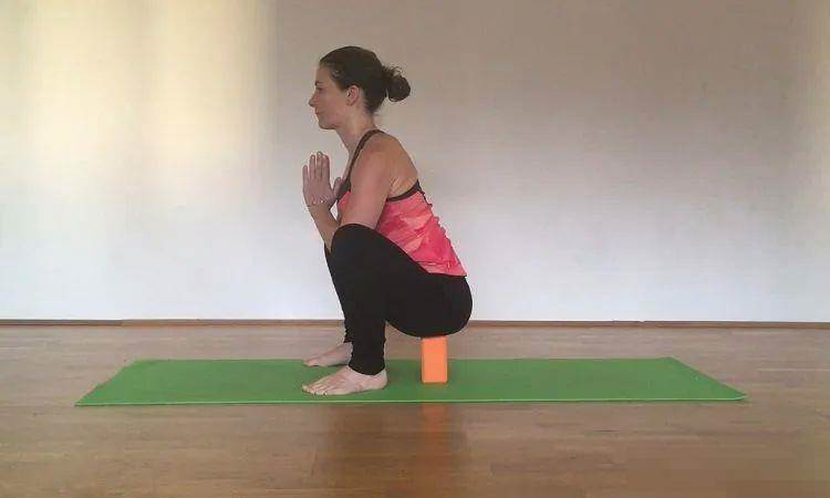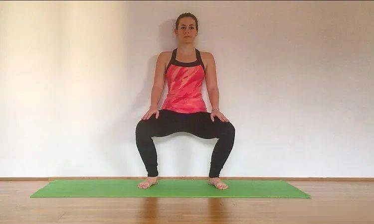 傳統上,在瑜伽深蹲中,手臂放在腿內側,肘部到大腿。通過將手臂帶到腿的頂部并向外伸出來改變手臂的位置。檢查你的位置,在腳跟向下壓向墊子的同時,手向下伸向地面。