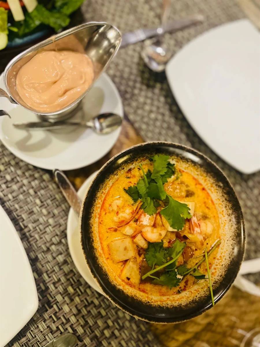 運氣好如我們,還能在出門吃早餐的瞬間,遇到松鼠和小鳥。與生態同住,我們一邊互相說笑,一邊品嘗著這里豐富的泰國菜肴。終于吃到最正宗的冬陰功、泰國南部辣到過癮的黃咖喱,還有美妙的本地雞尾酒。